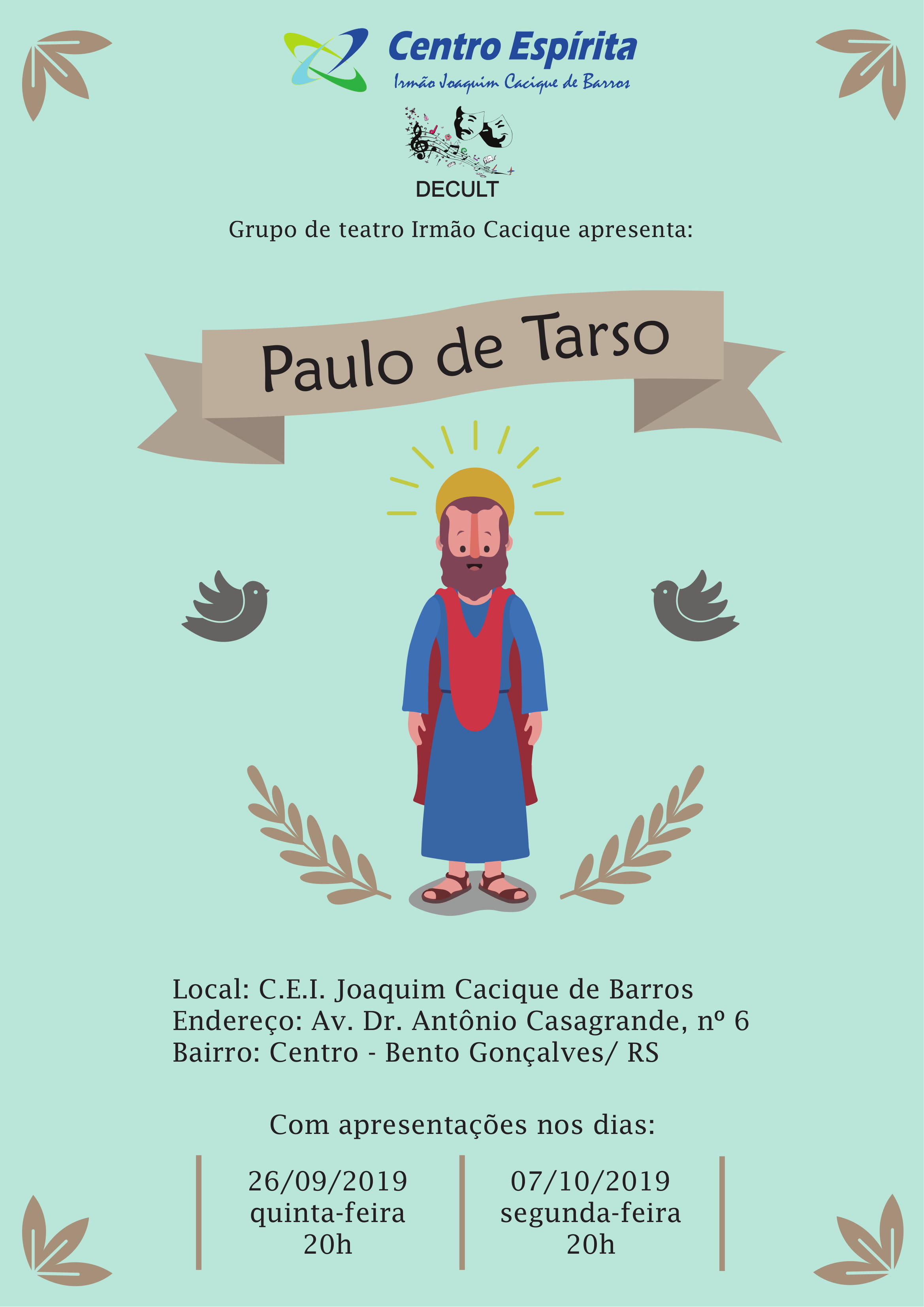 26/09/2019 e 07/10/2019 às 20 horas